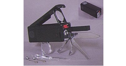 これ1セットで十八役+αの道具箱です。登山やキャンプなどで、 かさばって重い道具箱を持って行かなくてもOKです。 大ナイフ、 小ナイフ、プライヤー、プラスドライバー、マイナスドライバー、 ヤスリ、鋸、コルク抜き、鋏、シノー&ソーイングアイ、リーマー、 キーリング、缶切り、栓抜き、ノミ、メージャー、鱗取り、ルーぺ 等として使えます。更に、使い方を自分で考えればまだまだ用途が 増えますよ! しかもステンレス製で錆びず、衛生的です。 |